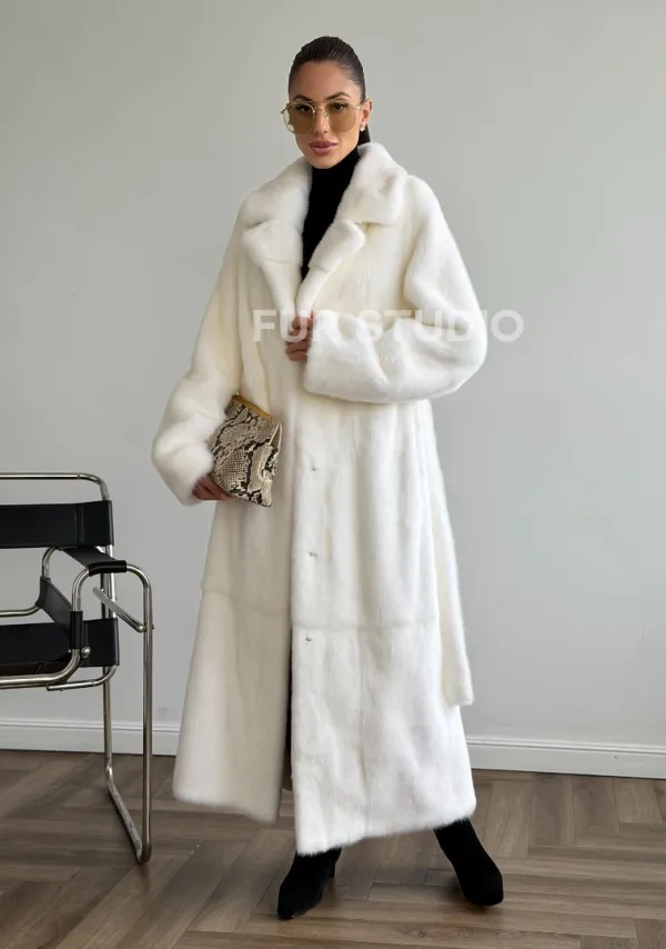 Белая норковая шуба в пол 102624
