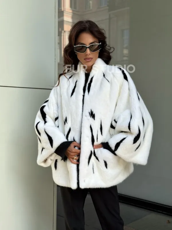 Белый норковый полушубок с рисунком доступна для покупки в нашем шоуруме Furs Studio в . У нас так же есть доставка во все города России. Добавьте немного роскоши в свой гардероб с этой шубой, которая будет служить вам многие годы.