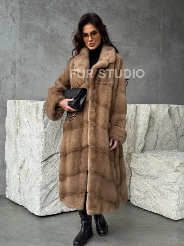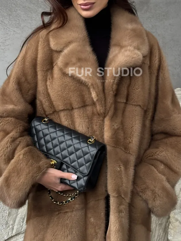 Бежевая норковая шуба oversize 102484
