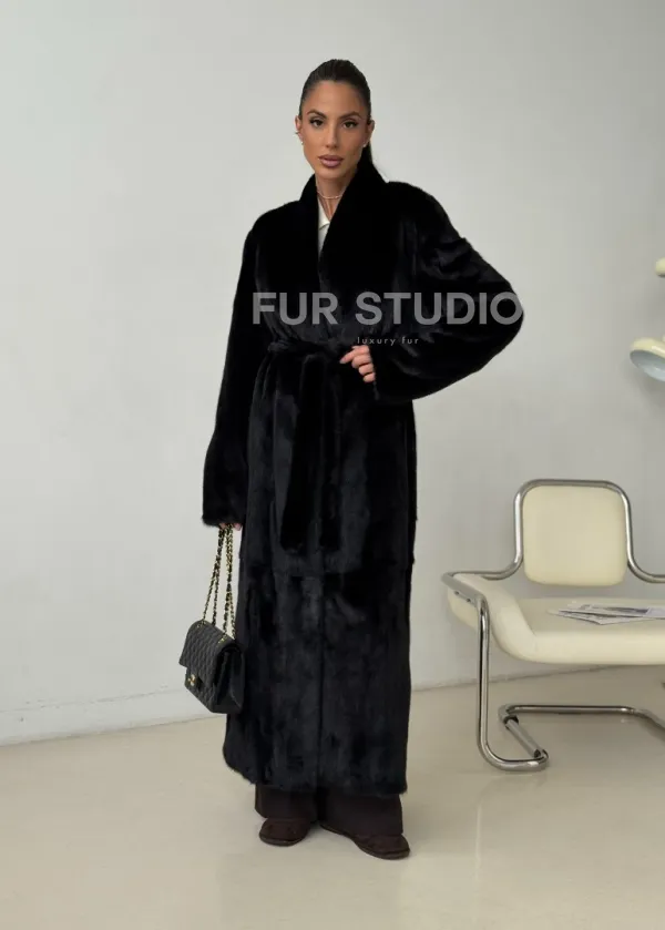 Длинная черная норковая шуба 102321