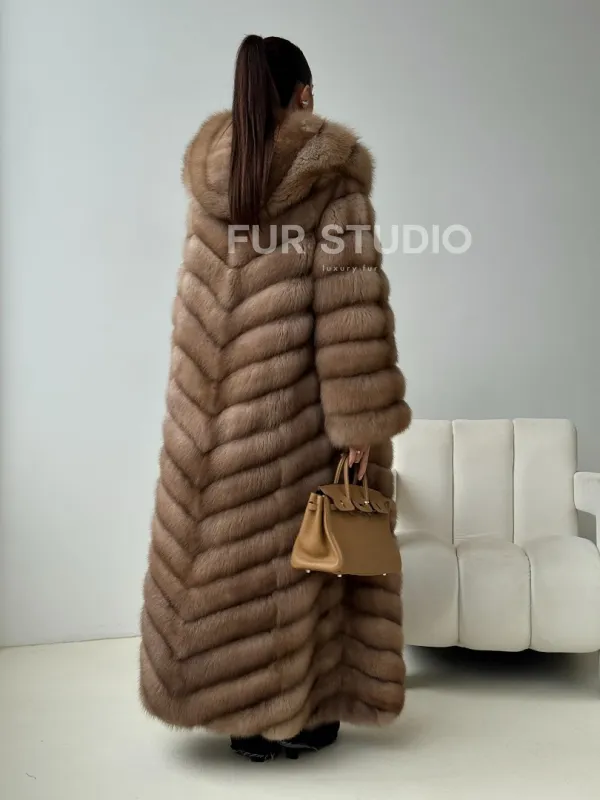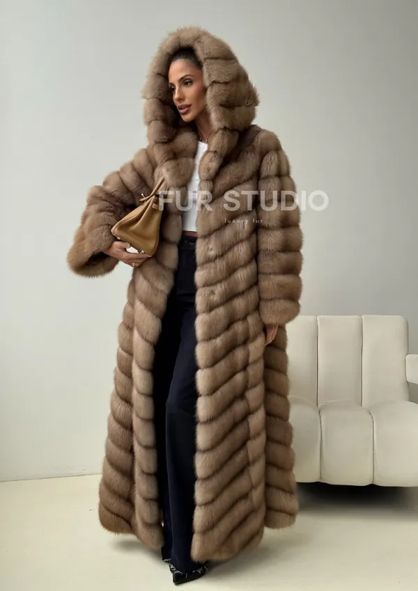 Длинная шуба из меха куницы с капюшоном доступна для покупки в нашем шоуруме Furs Studio в . У нас так же есть доставка во все города России. Добавьте немного роскоши в свой гардероб с этой шубой, которая будет служить вам многие годы.