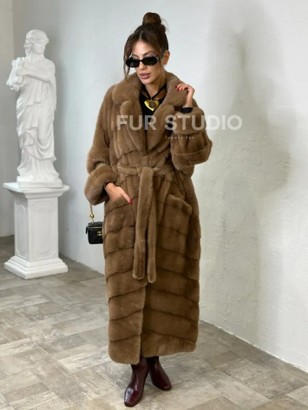 Длинная шуба карамель кимоно мех NAFA доступна для покупки в нашем шоуруме Furs Studio в . У нас так же есть доставка во все города России. Добавьте немного роскоши в свой гардероб с этой шубой, которая будет служить вам многие годы.