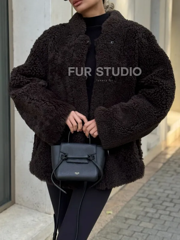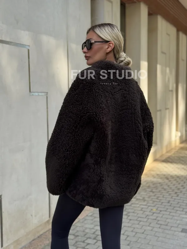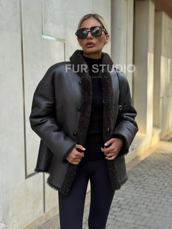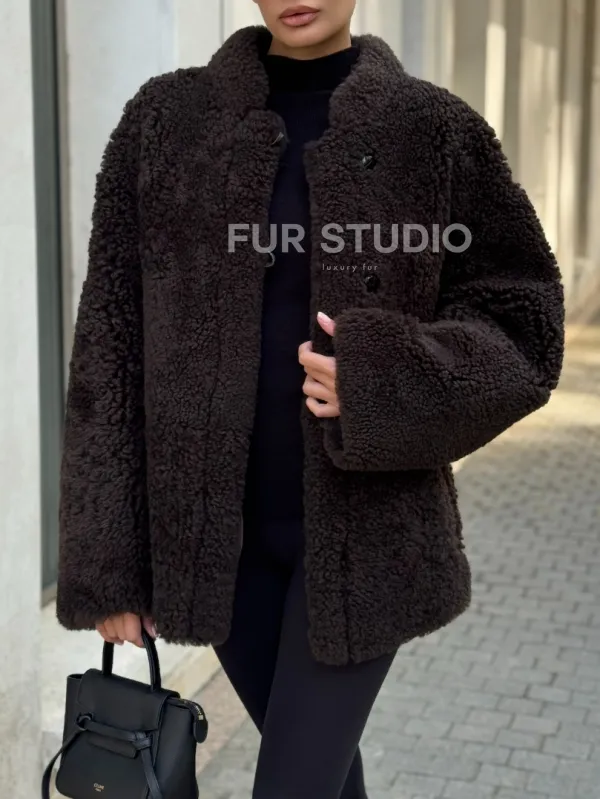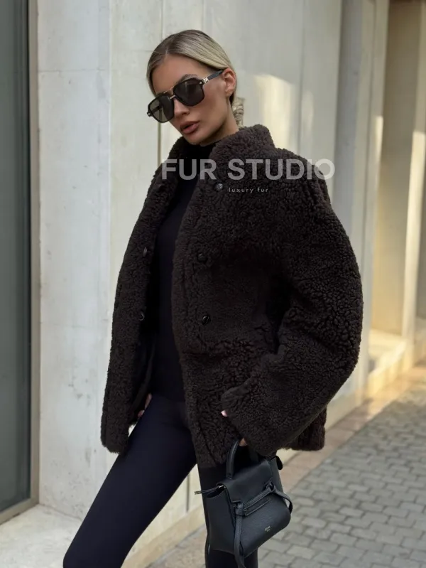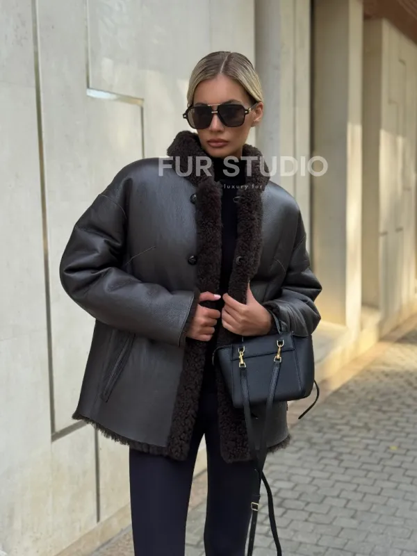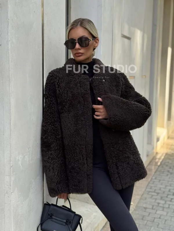 Двусторонняя коричневая дубленка из овчины 102256