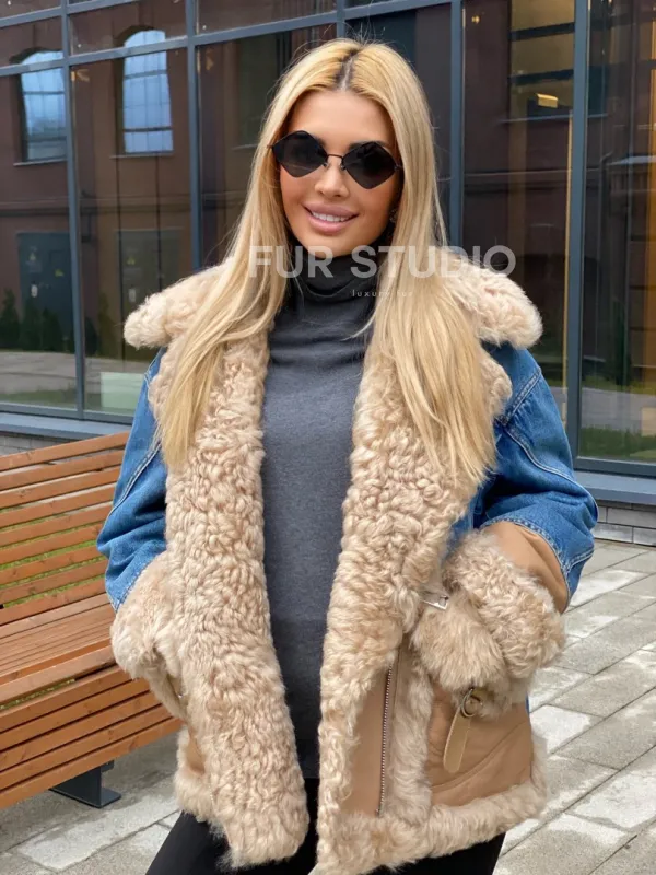 Куртка джинсовая с отделкой из натуральной овчины 100271