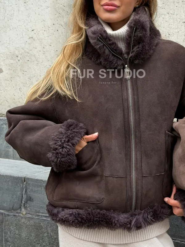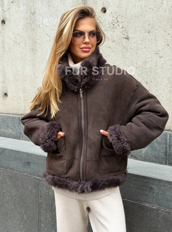 Натуральная двухсторонняя дубленка - бомбер 102543