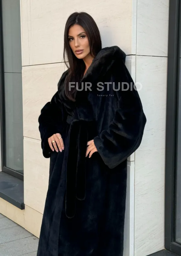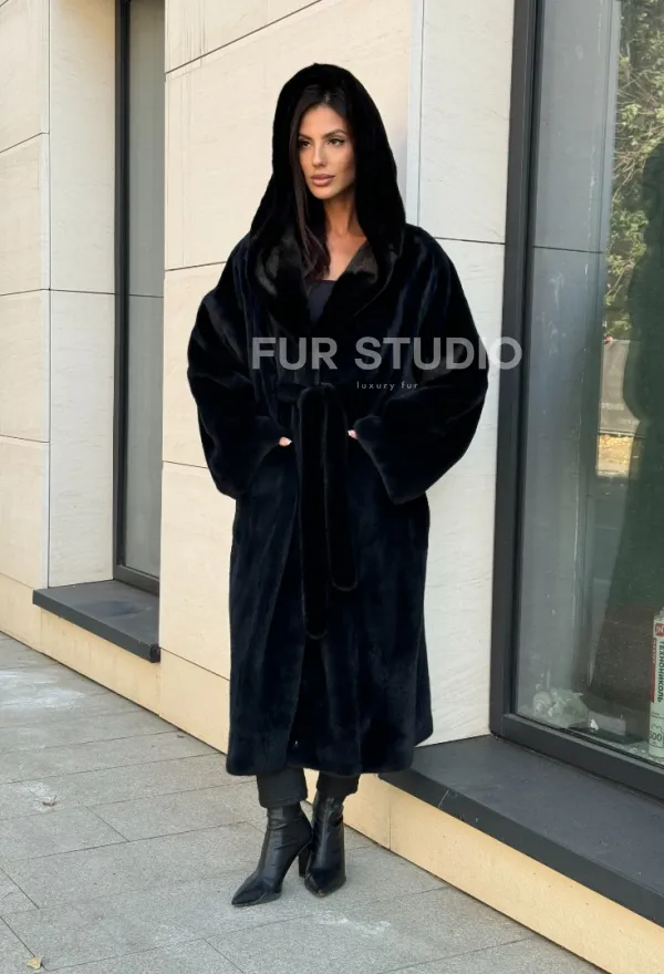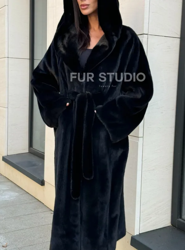 Норка кимоно BLACKGLAMA роспуск, капюшон кобра 101144