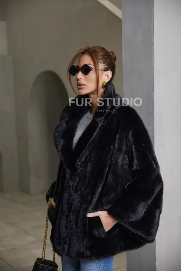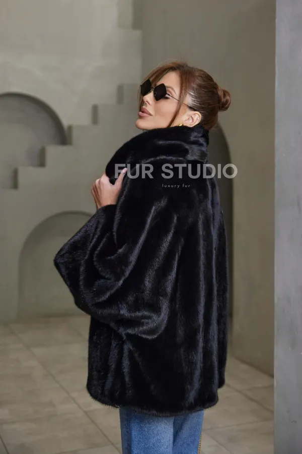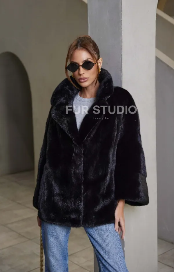 Норковый жакет роспуск - английский воротник -черный 100774