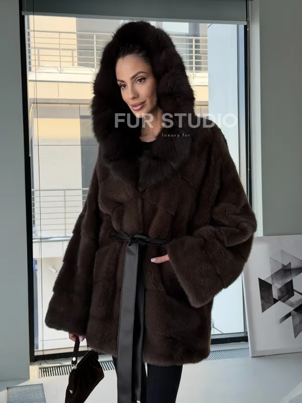 Норковая шуба кимоно с капюшоном куница доступна для покупки в нашем шоуруме Furs Studio в . У нас так же есть доставка во все города России. Добавьте немного роскоши в свой гардероб с этой шубой, которая будет служить вам многие годы.