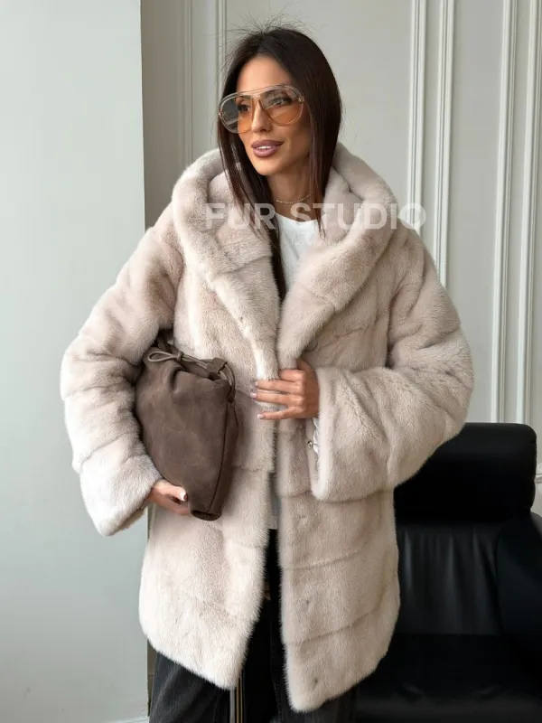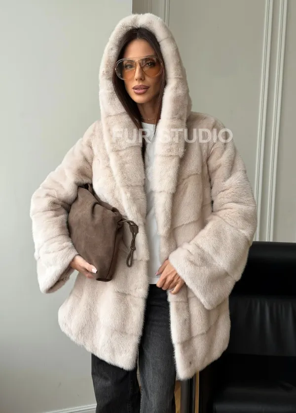 Норковая шуба с капюшоном - " рубашечный крой " 102579
