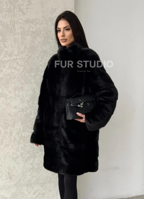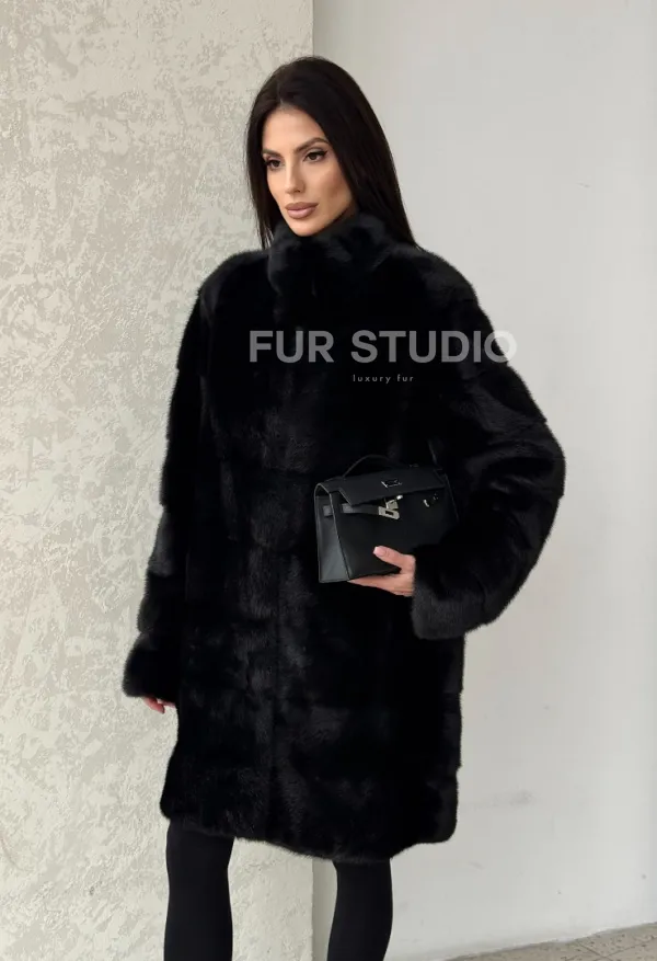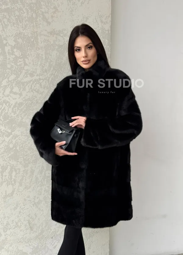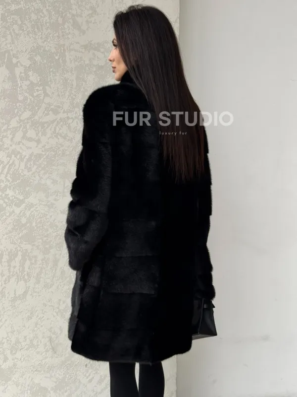 Норковая шуба в черном цвете воротник стойка 100105