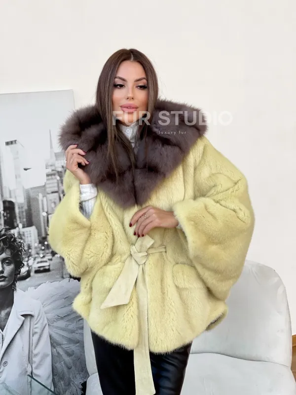Норковое пончо с капюшоном из меха куницы – выбор девушек, которые любят приковывать взгляды. Необычный цвет будет собирать восхищенные взгляды и выделит из толпы. Нежный мех норки согреет в любую непогоду в холода. Высокое качество изделия будет радовать долгие годы. Широкий капюшон из меха куницы бережно защитит от непогоды и ветра прическу.