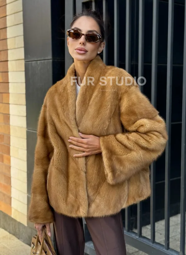 Норковый жакет Gold воротник V-образный 102229