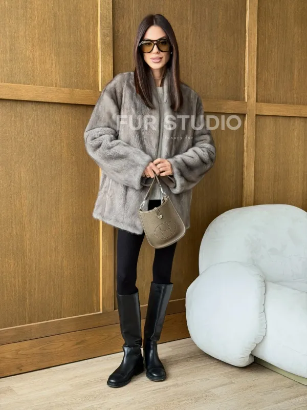 Норковый жакет в натуральном сером цвете 102737