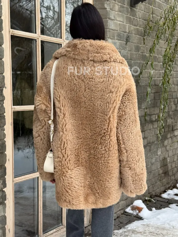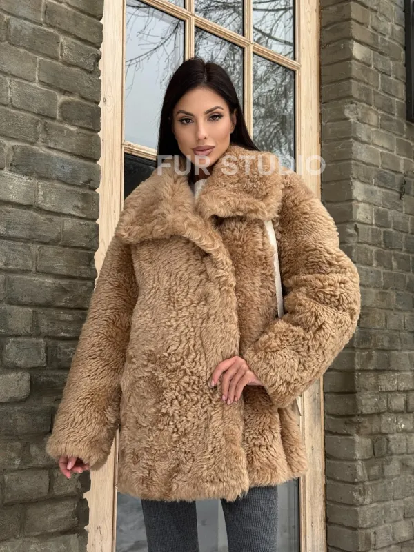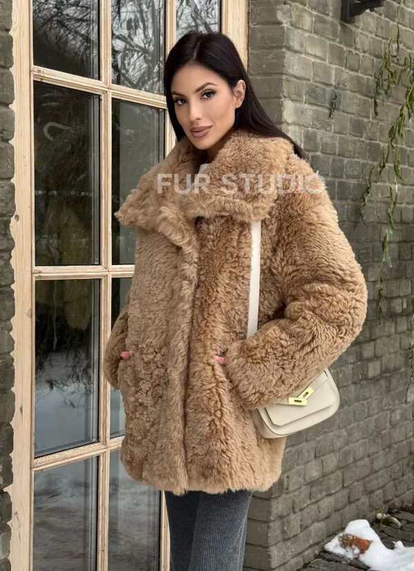 Шуба - дубленка из овчины в бежевом цвете 101433