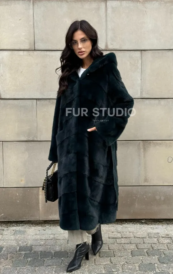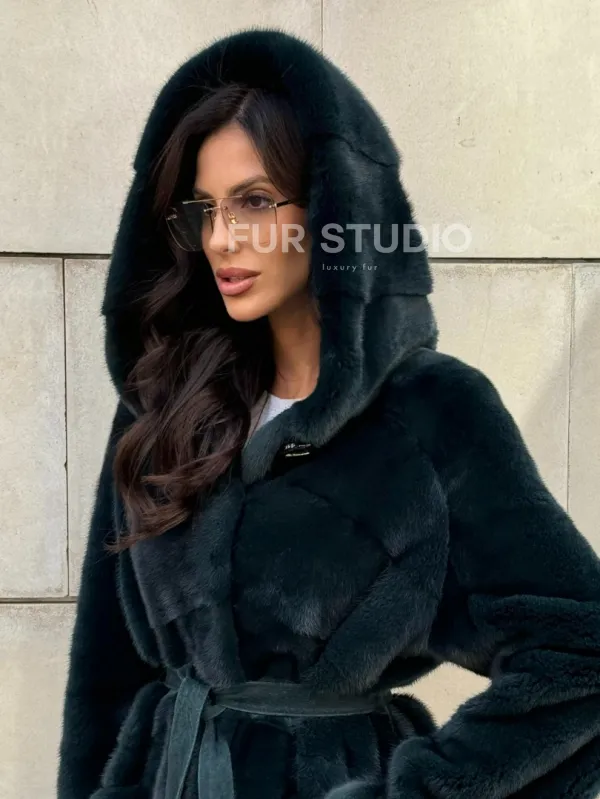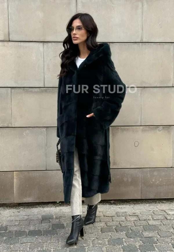 Шуба из аукционной норки NAFA с капюшоном 101020