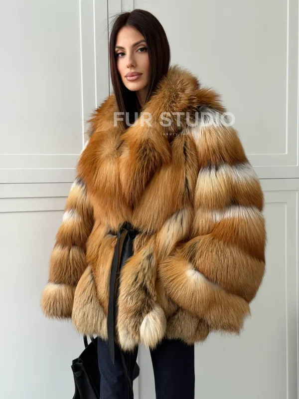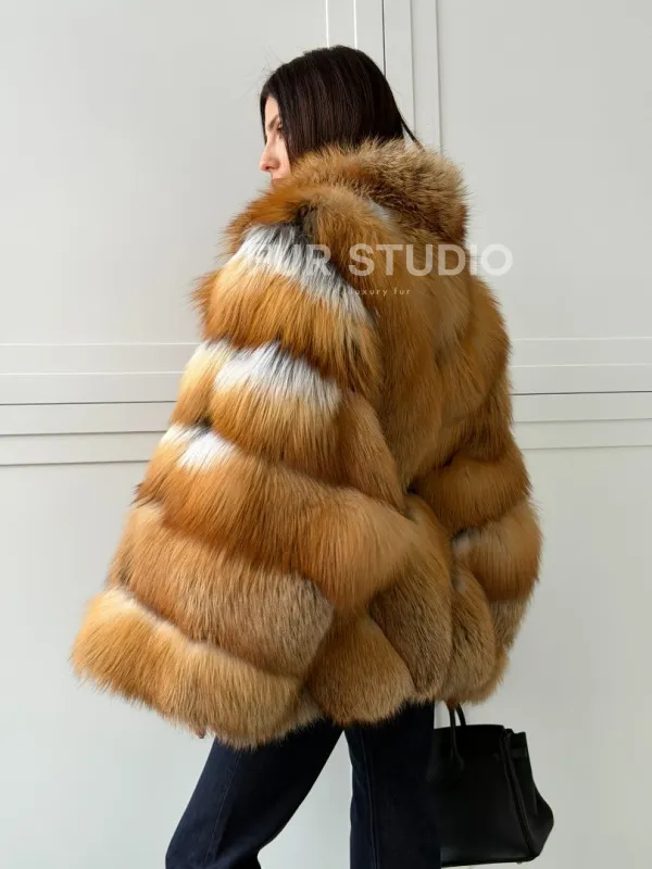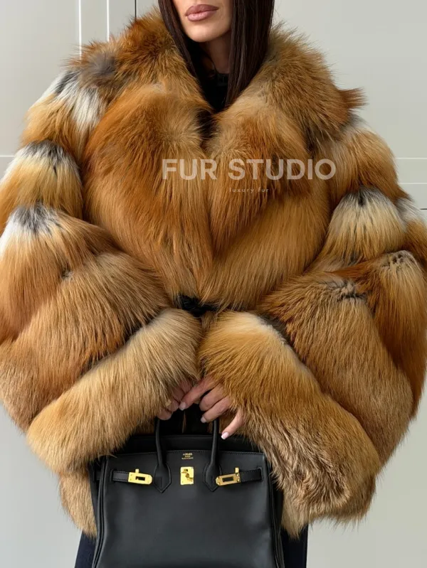 Шуба из лисы огневки - оверсайз 102808