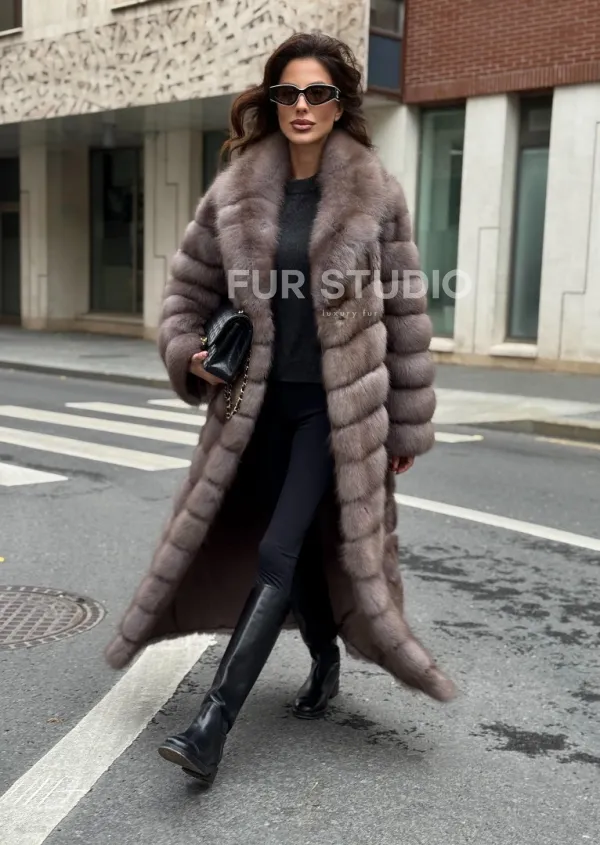 Шуба из меха куницы в цвете Truffle 102286