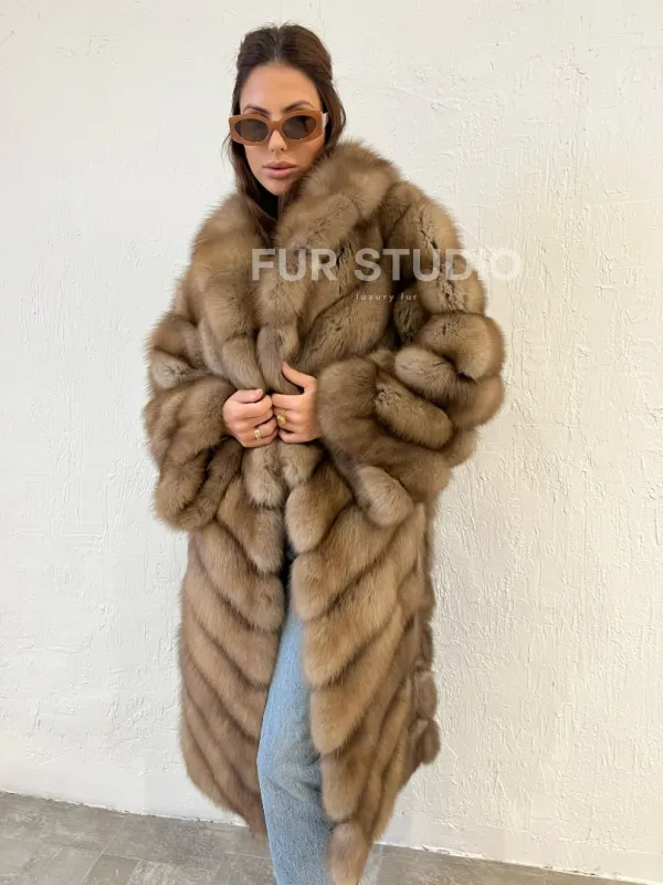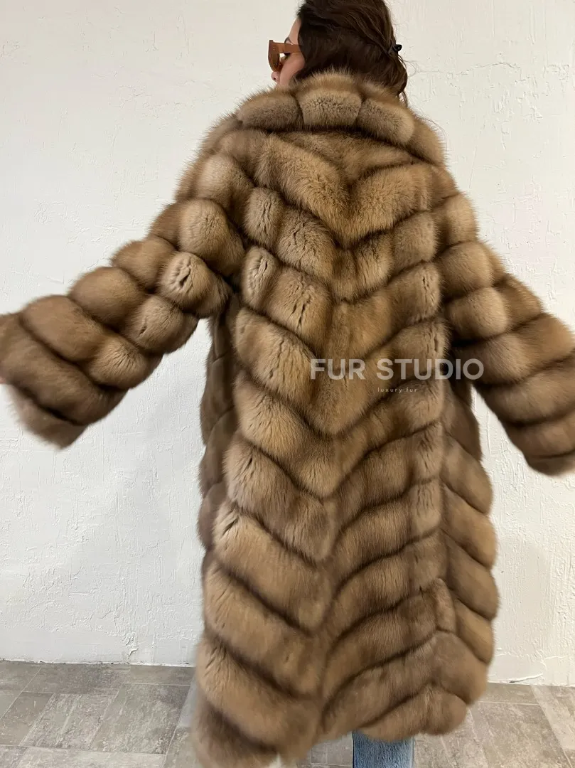 Мех данной шубы лесная куница, цвет натуральный. Предлагается в размерах от 40 до 48 (шьем под заказ по индивидуальным особенностям вашей фигуры). Длина модели 100-105 см, что выгодно подчеркивает фигуру девушек. Эта модель идеально подойдет для девушек и женщин, предпочитающих роскошные натуральные меха.