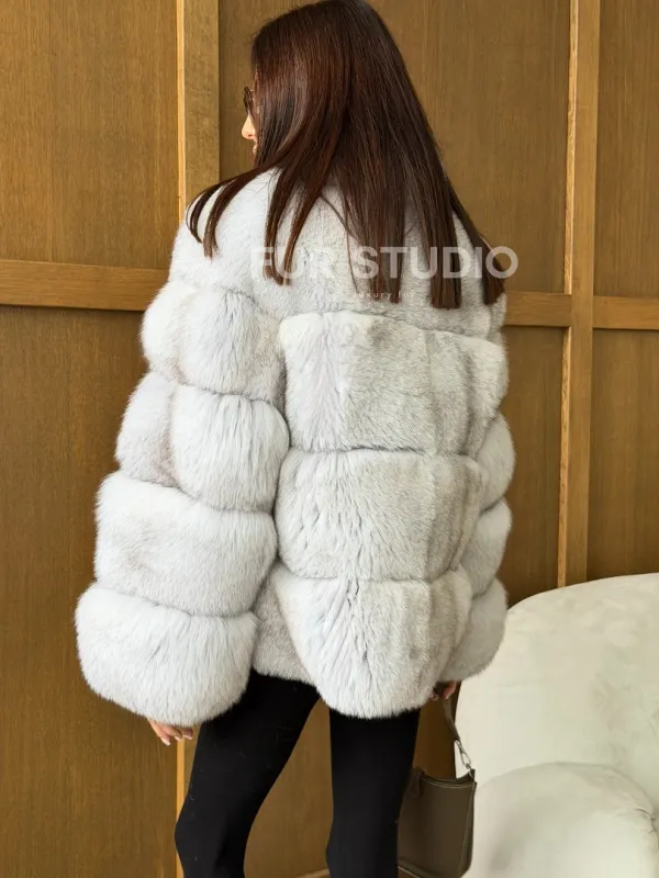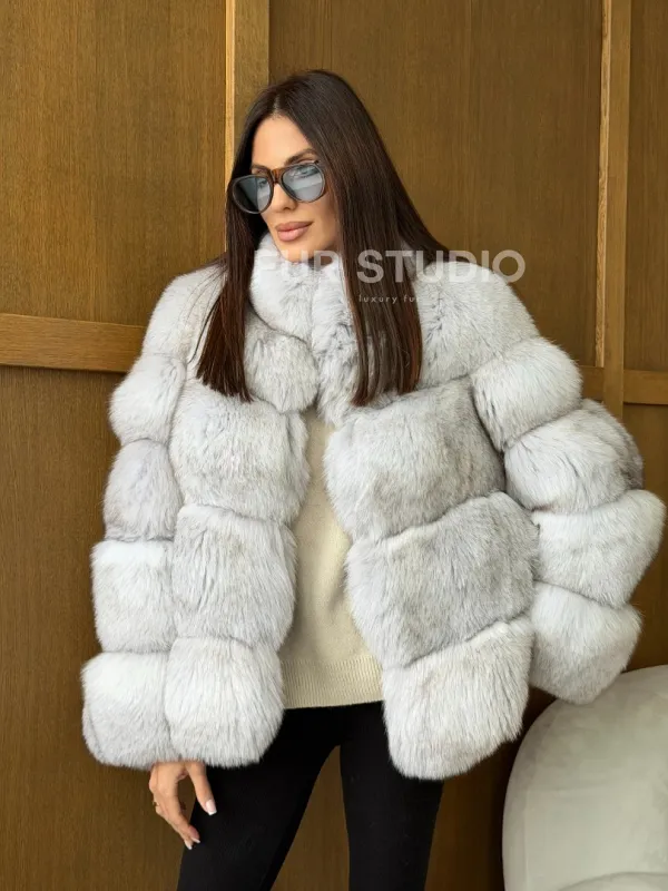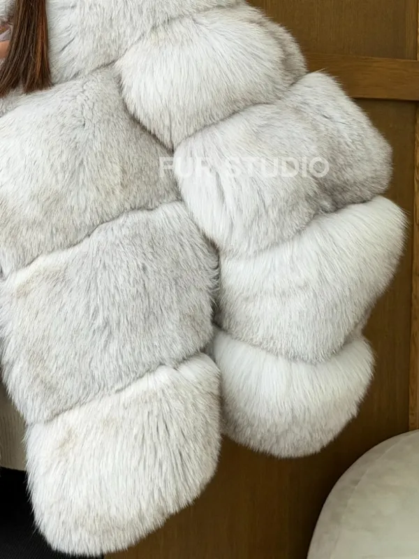 Шуба из натурального песца - стойка воротник 102745