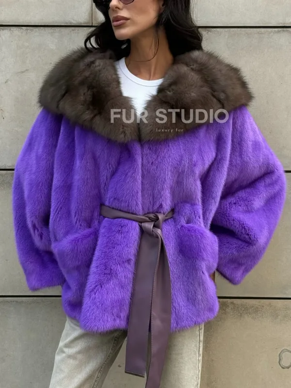 Мех данной шубы аукционная норка, цвет фиолетовый. Предлагается в размерах от 42 до 50. Длина модели 60-65 см, что выгодно подчеркивает фигуру девушек. Эта модель идеально подойдет для девушек и женщин, предпочитающих роскошные натуральные меха.