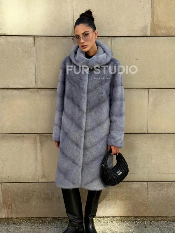 Шуба midi из меха норки с капюшоном, рукава трансформер 101059