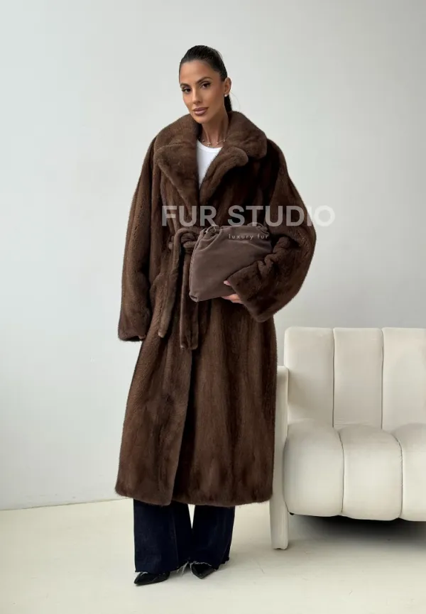 Мех данной шубы аукционная норка , цвет коричневый. Предлагается в размерах от 42 до 54. Длина модели 115-120 см, что выгодно подчеркивает фигуру девушек. Эта модель идеально подойдет для девушек и женщин, предпочитающих роскошные натуральные меха.