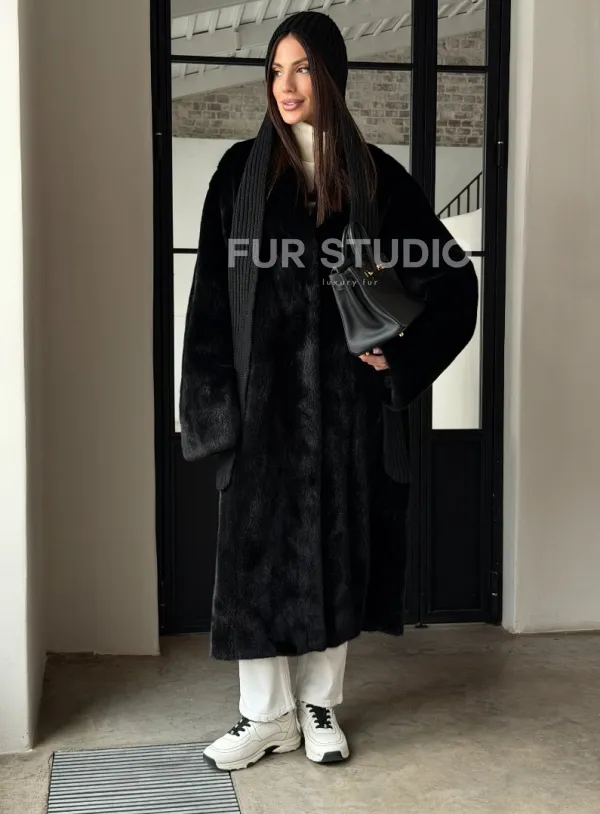 Мех данной шубы аукционная норка , цвет черный . Предлагается в размерах от 42 до 52. Длина модели 115-120 см, что выгодно подчеркивает фигуру девушек. Эта модель идеально подойдет для девушек и женщин, предпочитающих роскошные натуральные меха.