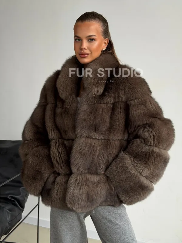 Мех данной шубы финский песец, цвет коричневый. Предлагается в размерах от 42 до 46. Длина модели 60-65 см, что выгодно подчеркивает фигуру девушек. Эта модель идеально подойдет для девушек и женщин, предпочитающих роскошные натуральные меха.