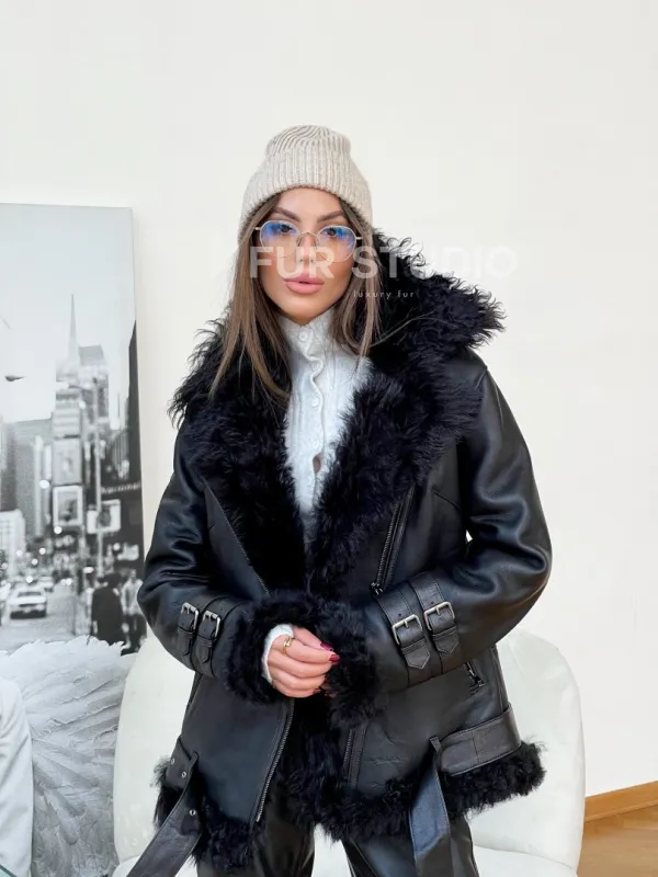 Стильная дубленка из натуральной овчины Тиградо 100169