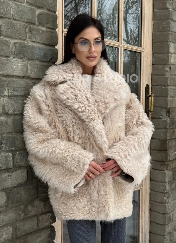 Светлая короткая шуба из испанской овчины 101438